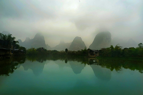 天空有些陰,不時(shí)還會(huì)飄起一些細(xì)雨,河面上騰起一些云霧,別有一番韻味。